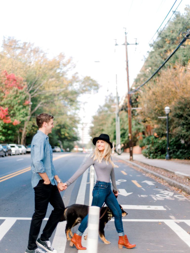 Caitlin and Bobby were referred to me by a mutual friend and I could not be more thankful. I know that I say this all the time but, I have the best clients ever! When I first talked with Caitlin, she was telling me how important it was to her for her pictures to have meaning to them as a couple. To shoot them in a place that meant something to them, which I always tell my clients how important that is. But the thing that made me fall in love with her the most was when she told me that she was looking through my instagram and opened one of my stories of my silly dog, Jake, with his head out the window, with me giggling in the background. She said “That is when I knew I found my photographer!” I was laughing so hard because she knew in that instant how much of a crazy dog lady I was, and she loved her pup, Max, just as much.